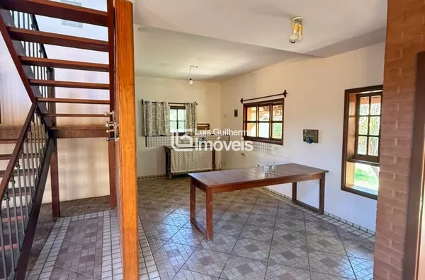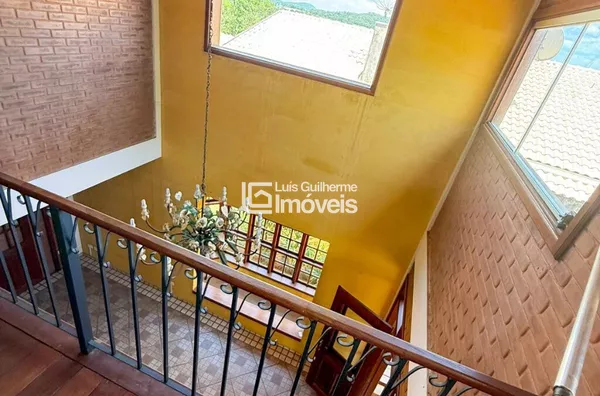 1º piso: Varanda, Sala de estar, sala de jantar com lareira, cozinha, dispensa, banheiro social e lavanderia. 2º Piso: 1 suíte com closet , sacada E 2 quartos .