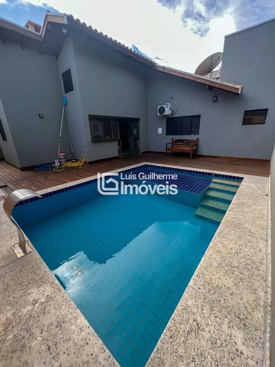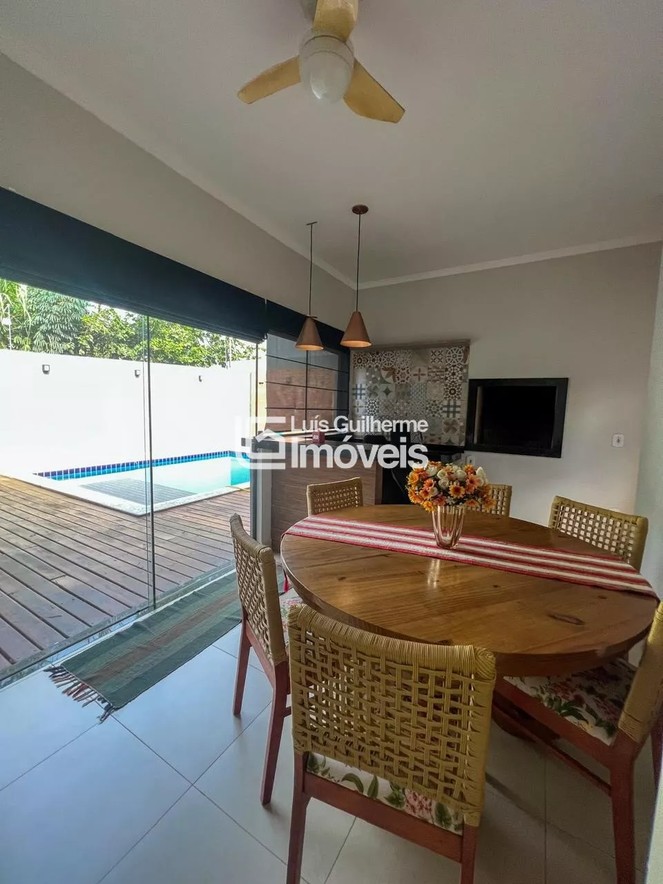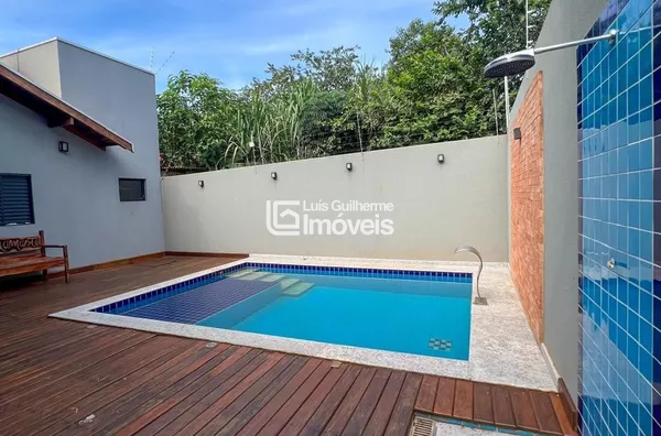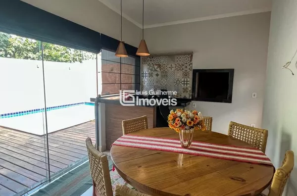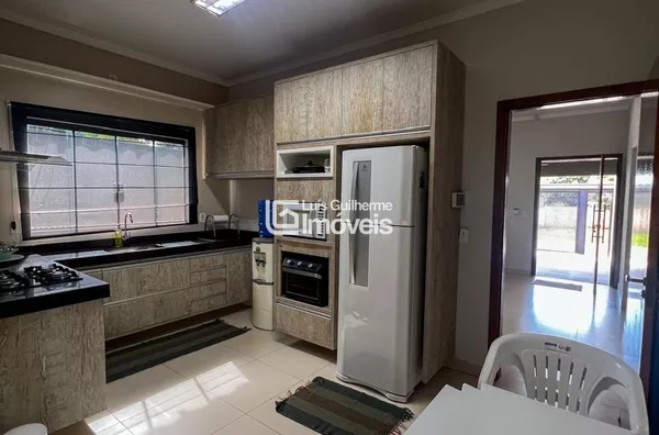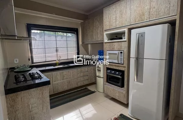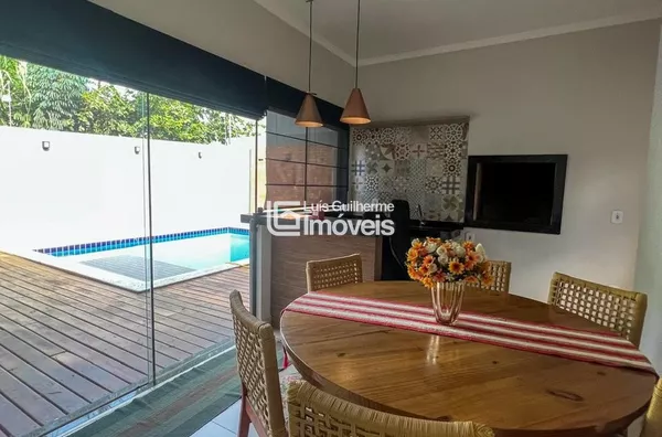 Sala, cozinha integrada com área gourmet, 01 suíte, 02 quartos, 01 banheiro social, lavanderia, lavabo, piscina e garagem coberta para 2 carros.