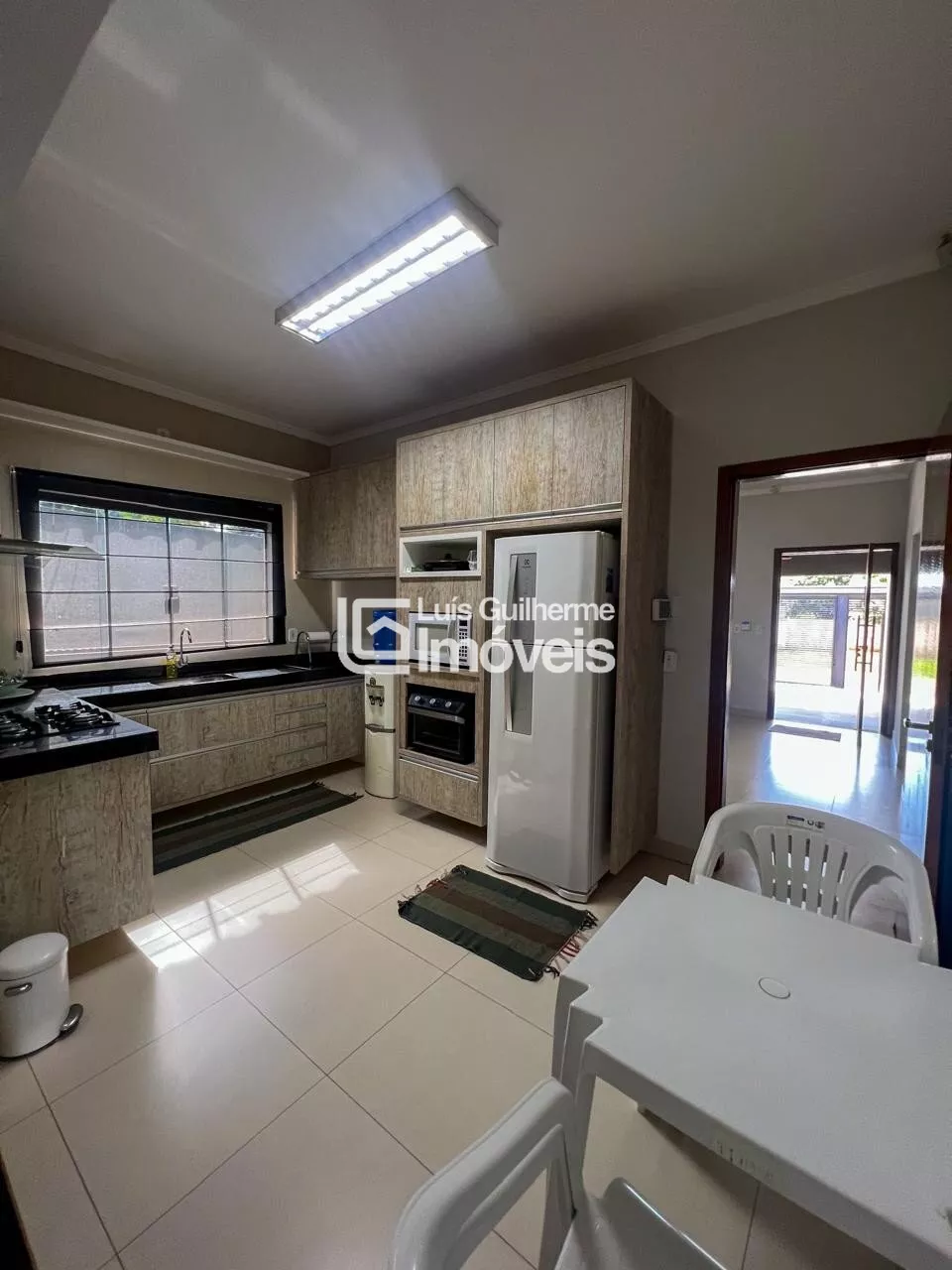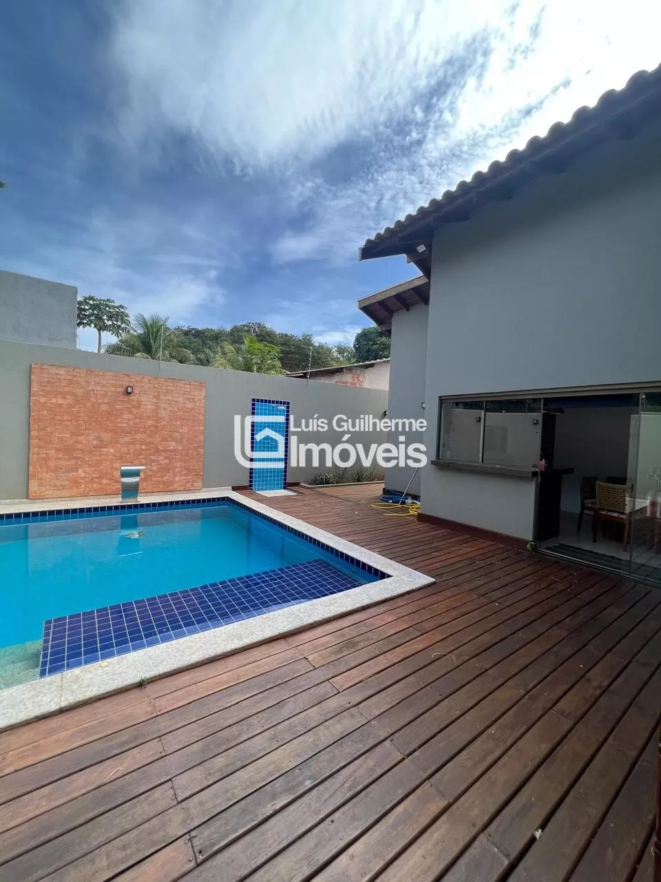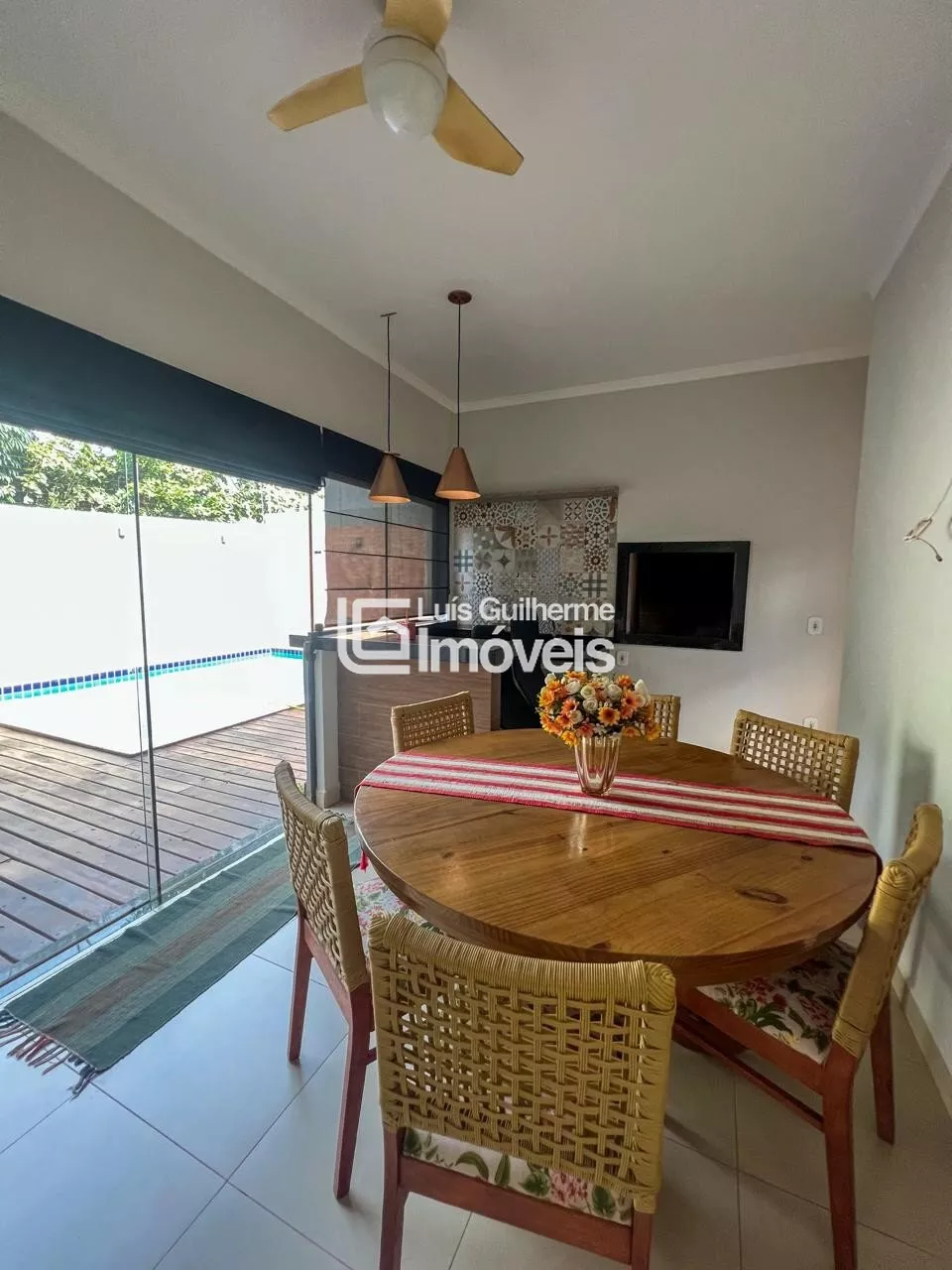 Sala, cozinha integrada com área gourmet, 01 suíte, 02 quartos, 01 banheiro social, lavanderia, lavabo, piscina e garagem coberta para 2 carros.