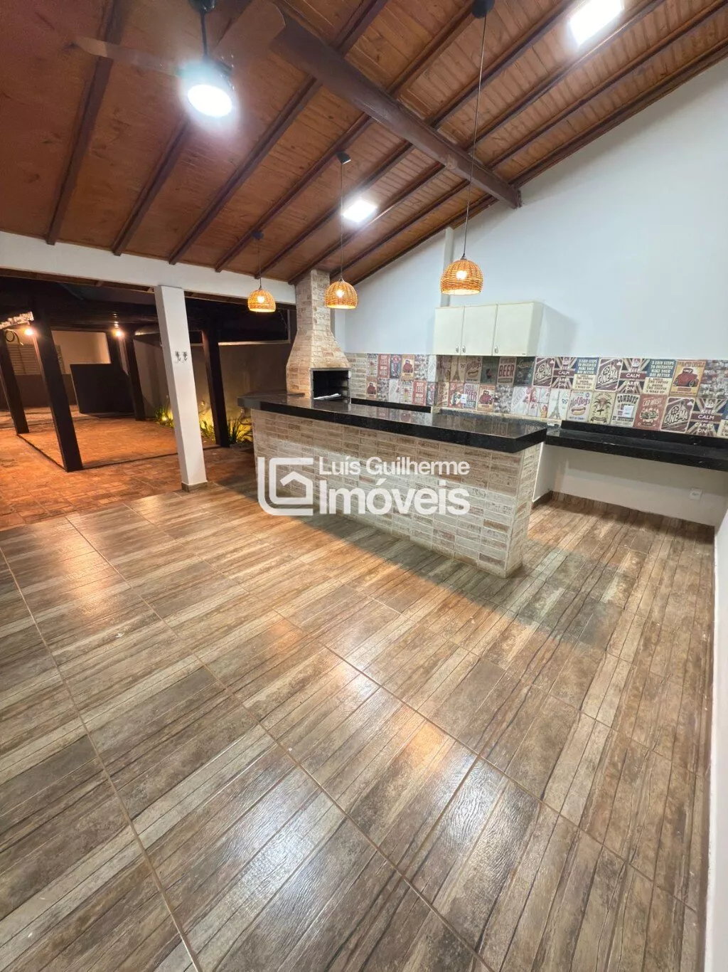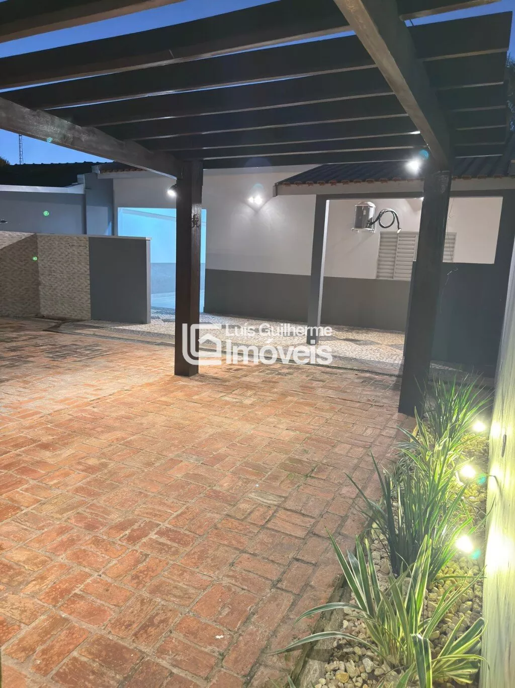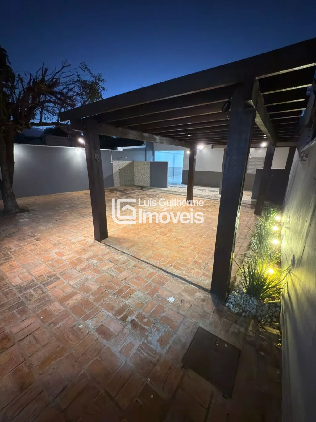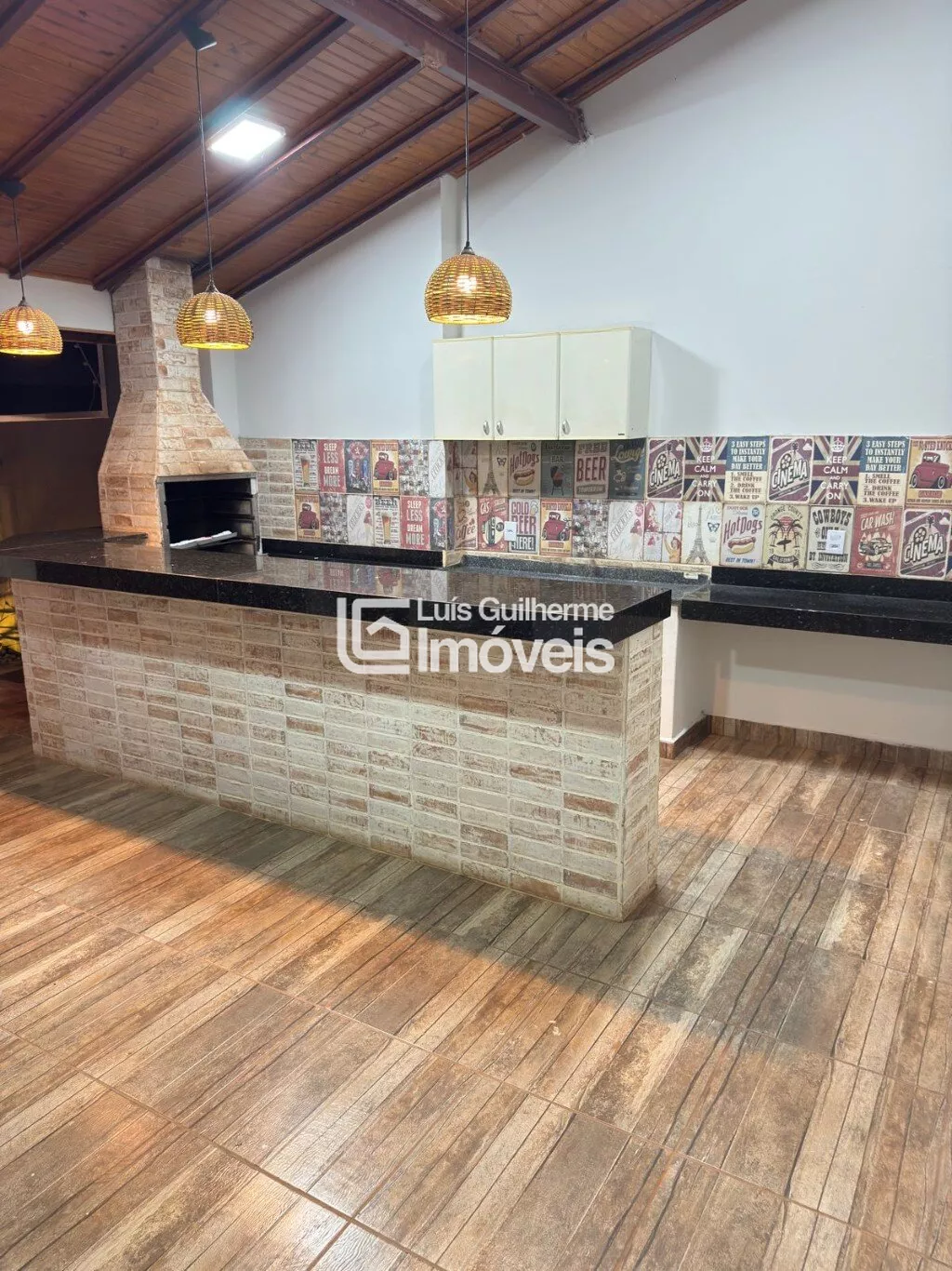 Sala/Cozinha com balcão,1 quarto, 1 suite, banheiro social, varanda em L com garagem para até 3 carros, área de serviço.Aos fundo edícula com Área gourmet, 1 quarto e banheiro social. No quintal um pergolado e ducha.