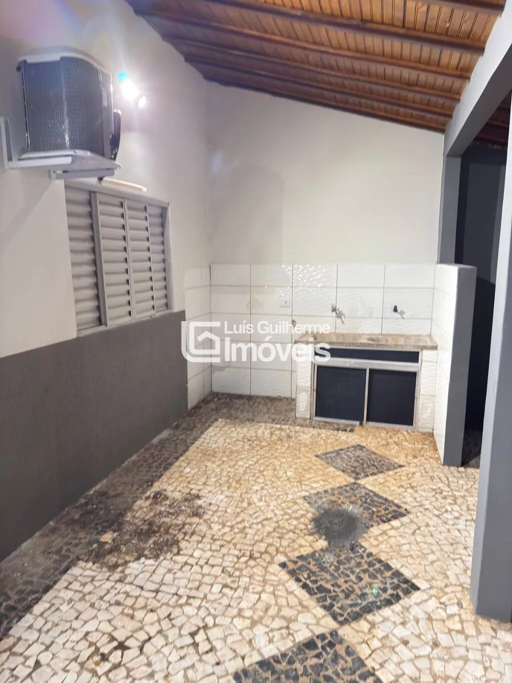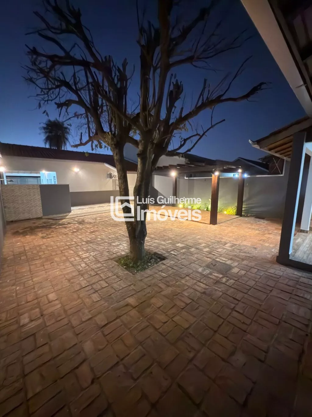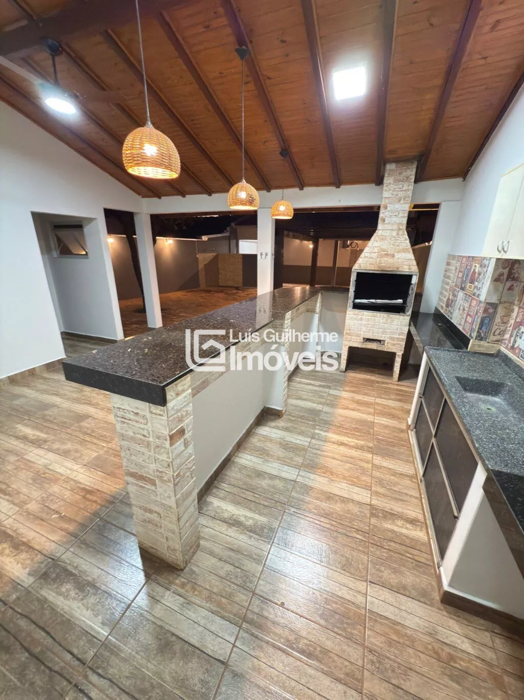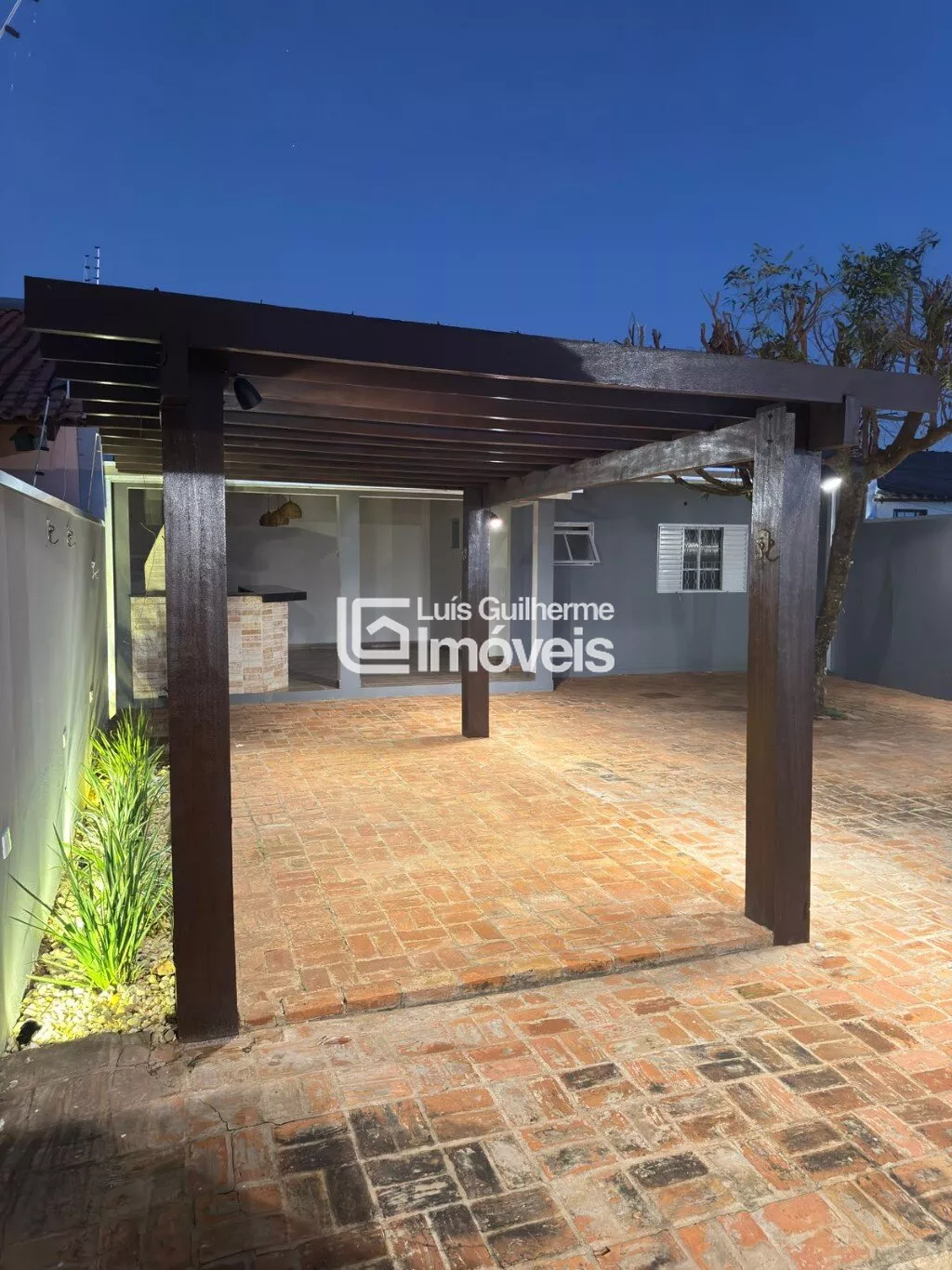 Sala/Cozinha com balcão,1 quarto, 1 suite, banheiro social, varanda em L com garagem para até 3 carros, área de serviço.Aos fundo edícula com Área gourmet, 1 quarto e banheiro social. No quintal um pergolado e ducha.