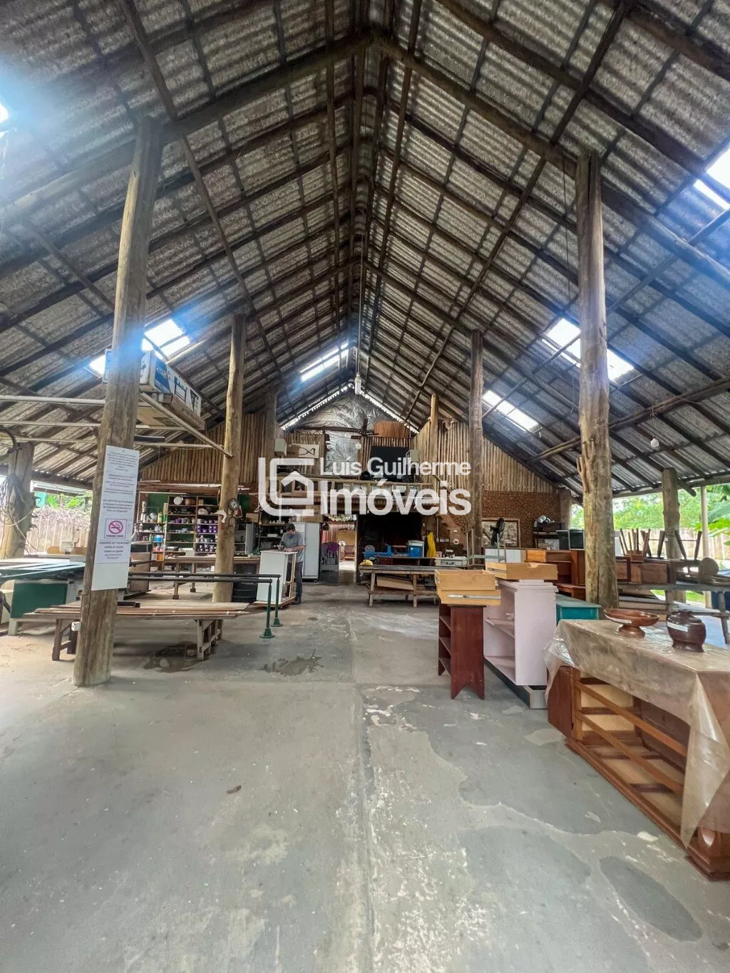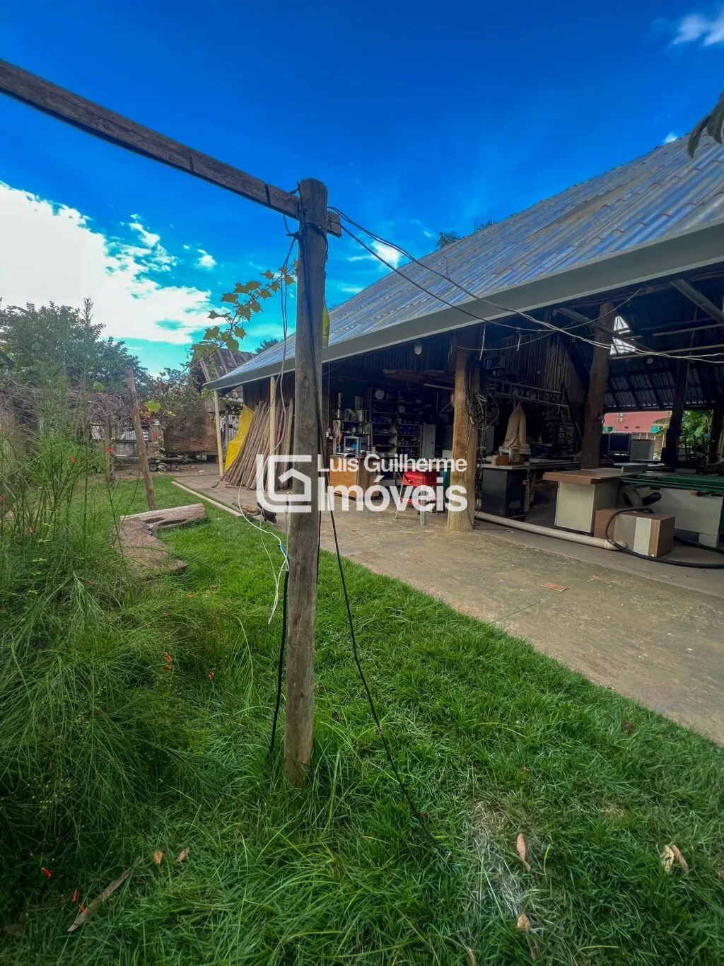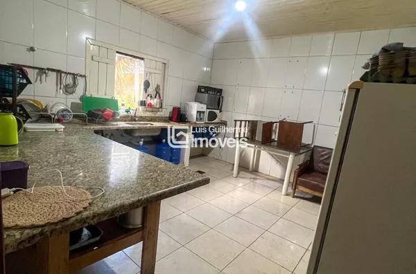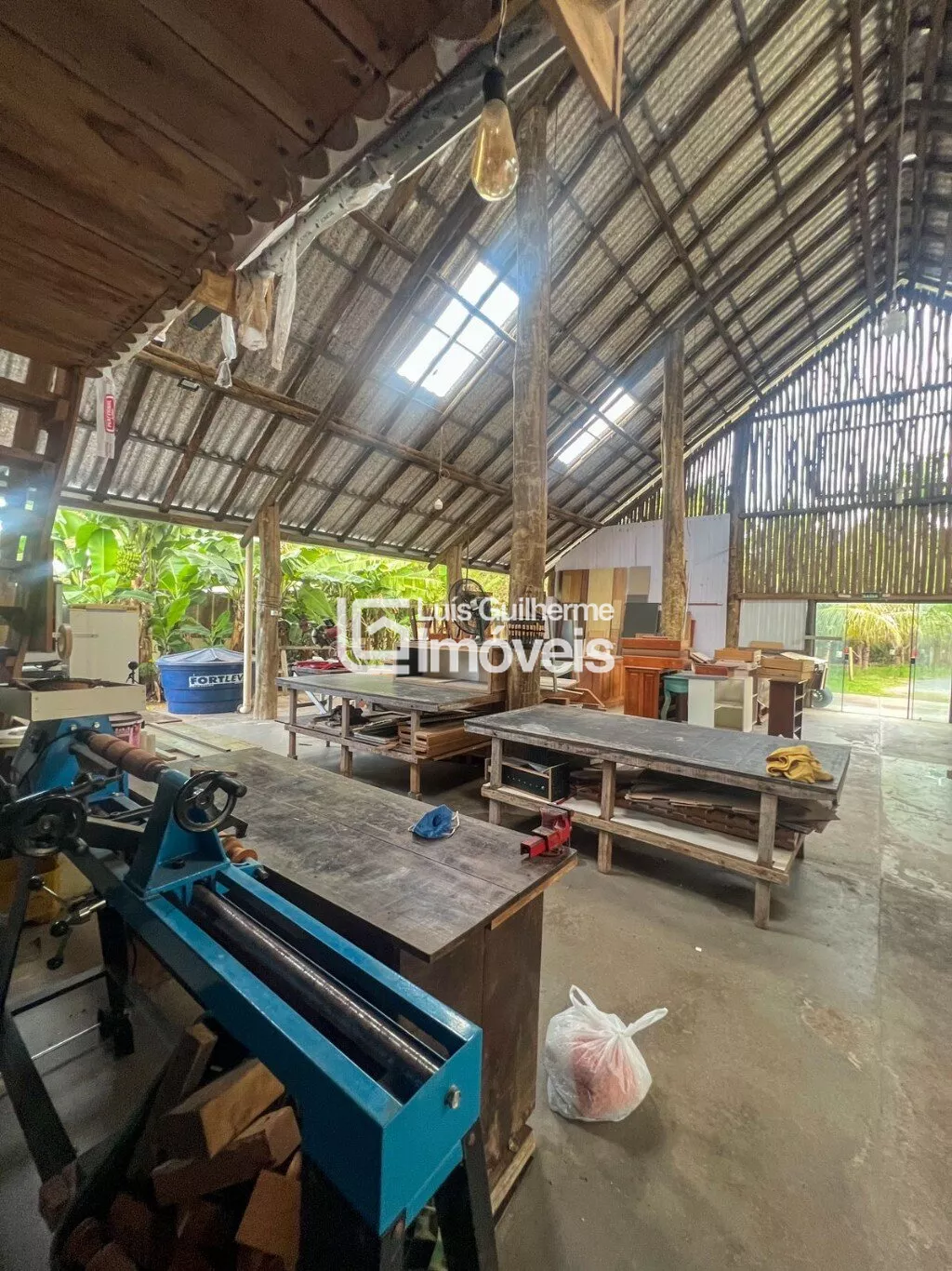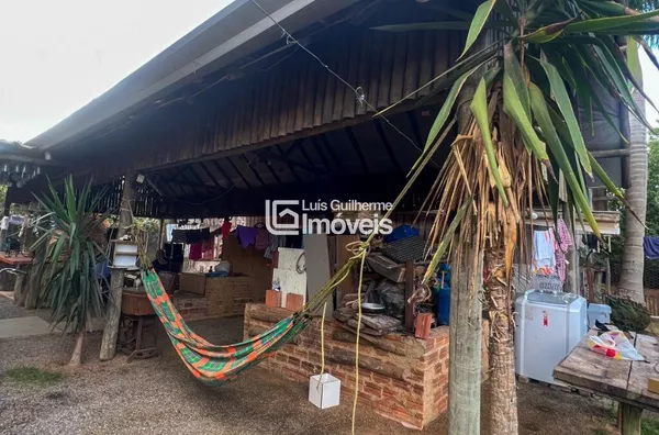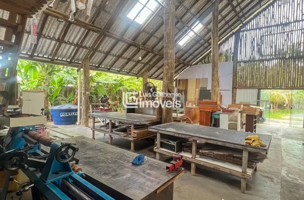Galpão em estrutura mista de alvenaria e eucalipto tratado, copa e cozinha, mezanino com palco e dois quartos, 5 banheiros sociais. Aos fundos casa de madeira colonial banheiro e adega subterrânea.Amplo quintal com pomar, área para churrasco com fogão a lenha de chão e fogão caipira com forno embutido.