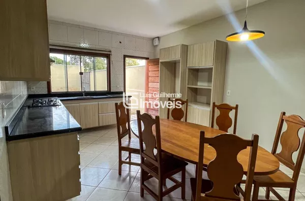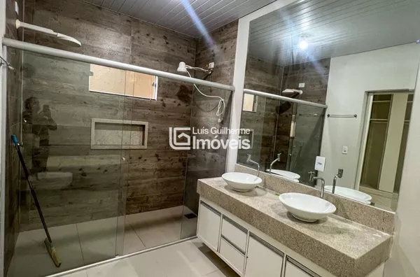 Sala, cozinha, 1 suíte master com banheira de hidromassagem, 01 suíte,01 banheiro social e garagem coberta. Aos fundos: Área gourmet, área de serviço, lavabo e garagem descoberta . ⚠️ Cozinha com armários embutidos. ⚠️ Acompanha alguns móveis.