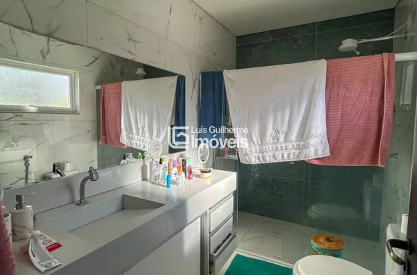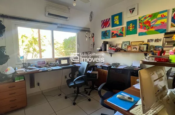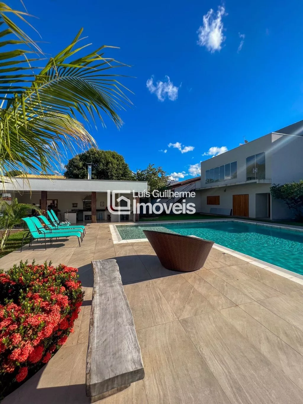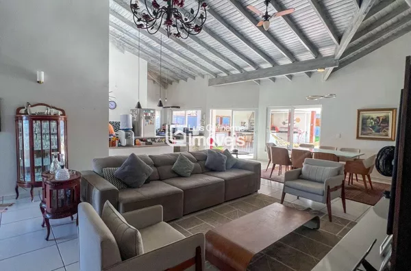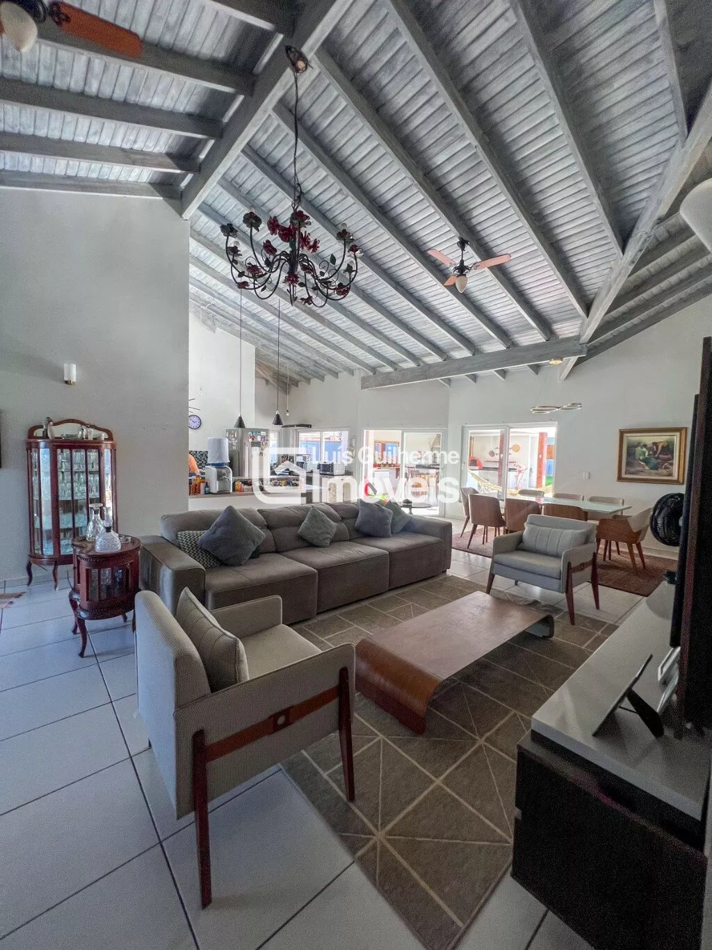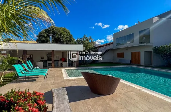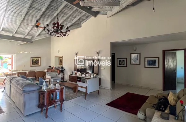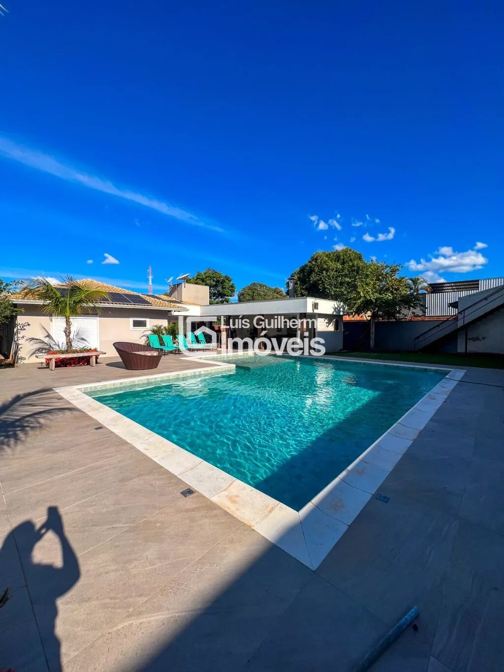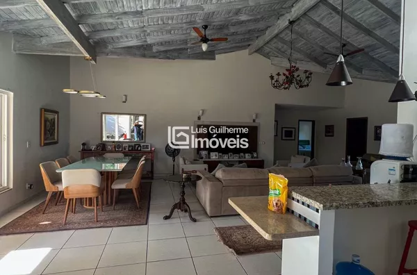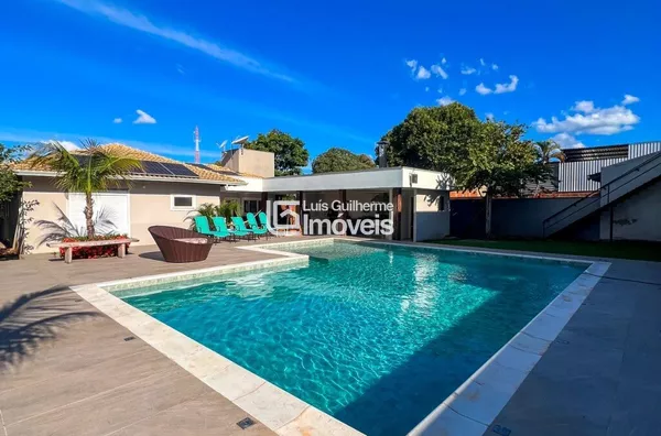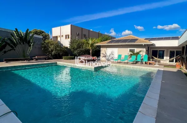 Sala ampla integrada com copa e cozinha, 01 suíte com closet, 01 suíte, 02 quartos, 02 banheiros, 01 ateliê, 01 escritório, quarto de ferramentas, área de serviço e garegem.Área gourmet com uma ampla piscina, churrasqueira, parrilha, forno de pizza e lavabo. Aos fundos um sobrado inacabado.