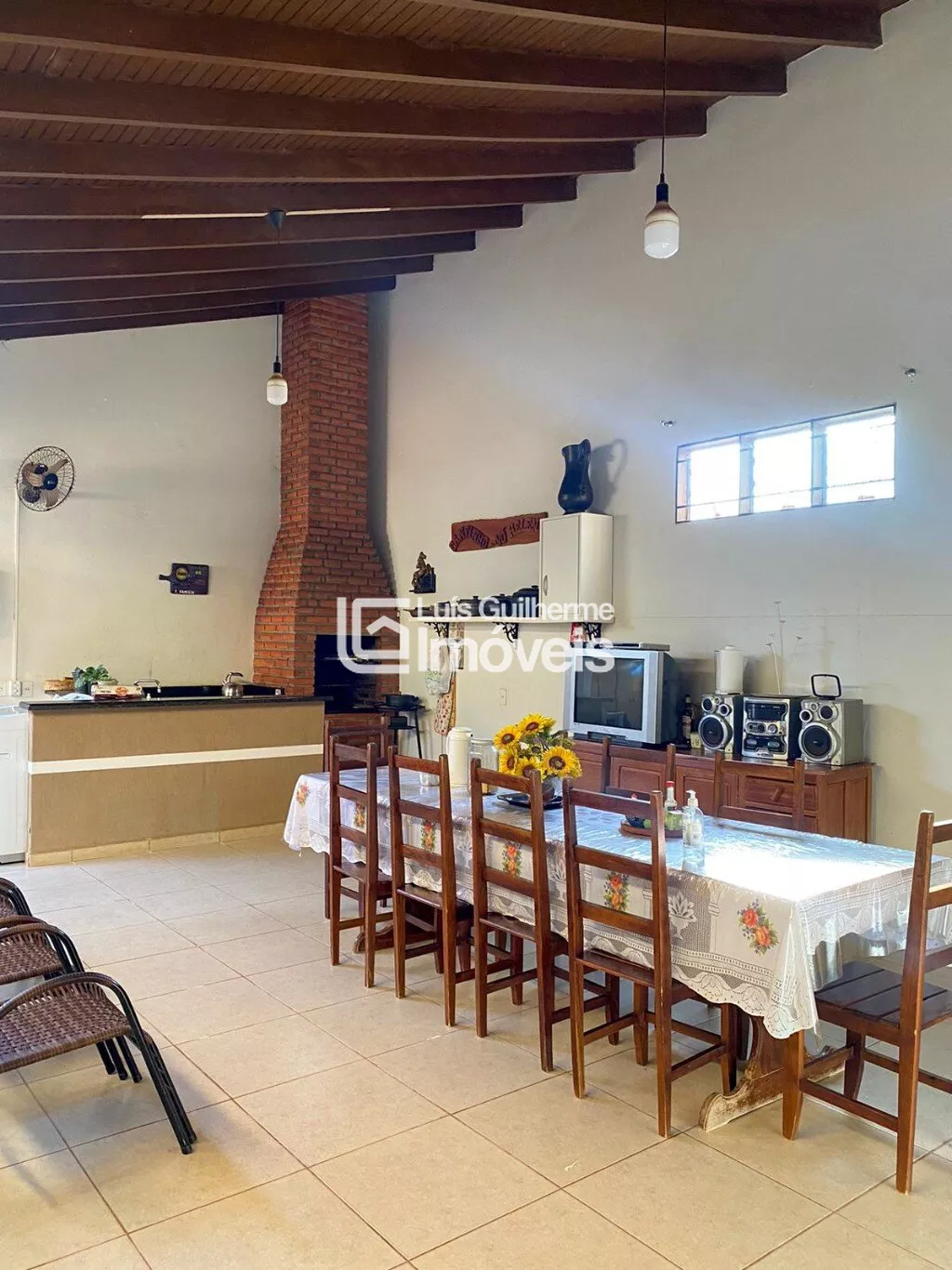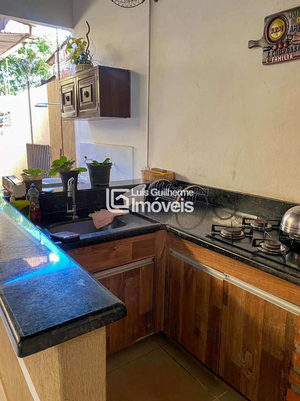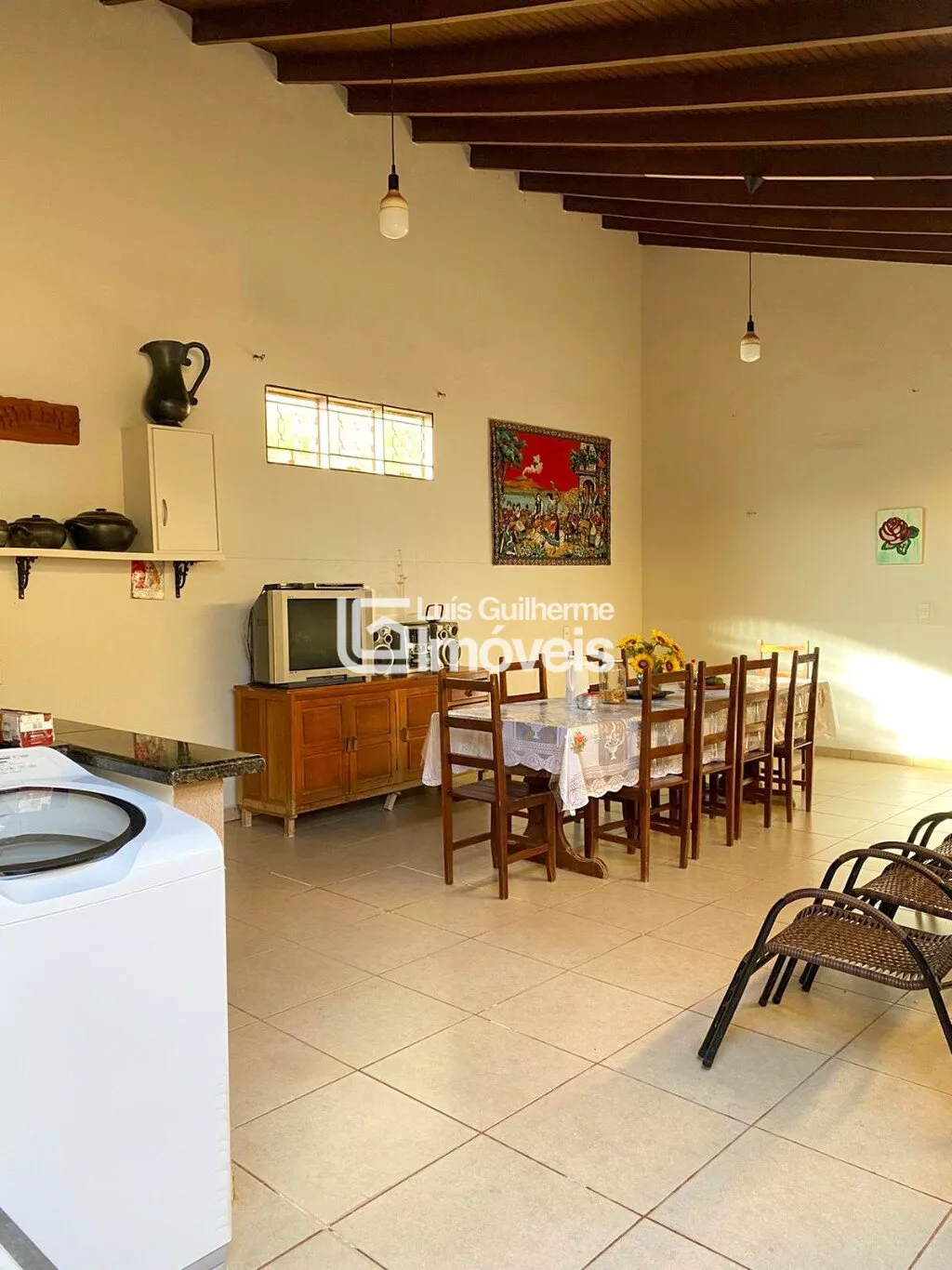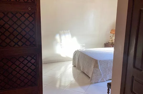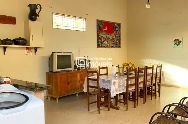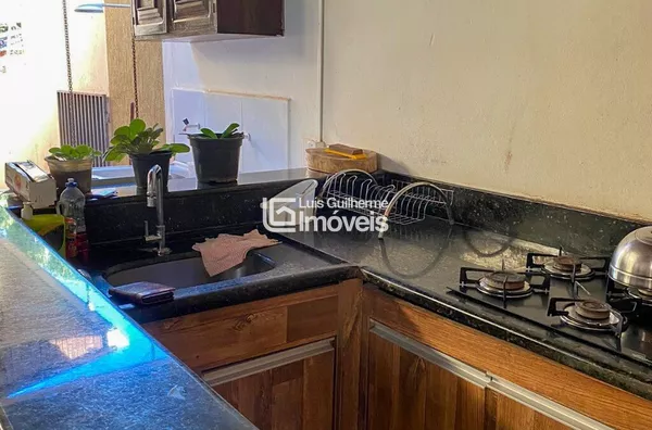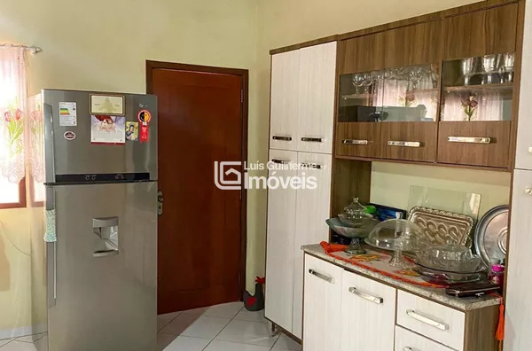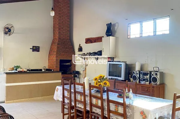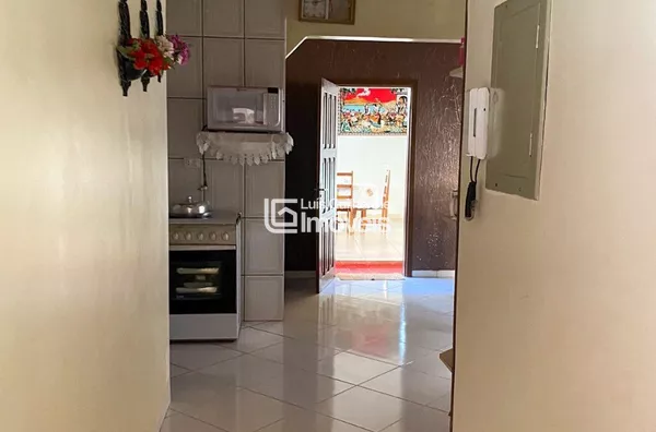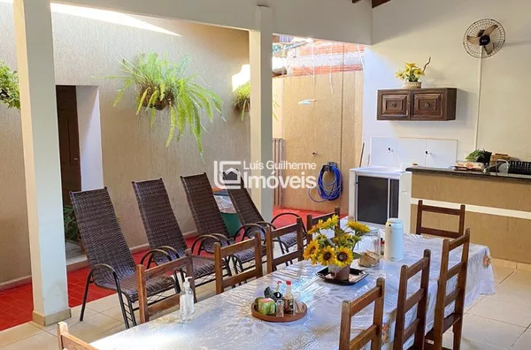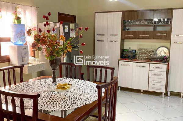 sala de estar, sala de jantar, cozinha ampla, 1 quarto, 2 suítes, 1 banheiro social e garagem.Aos fundos uma edícula contendo um quarto, área gourmet e área de serviço.⚠️ Portão de elevação.